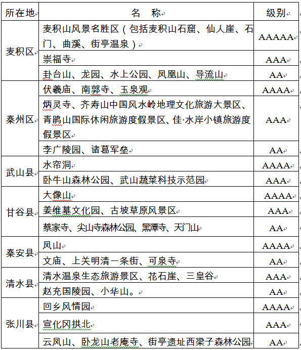 天水市恢復(fù)開放的國家A級(jí)旅游景區(qū)名單