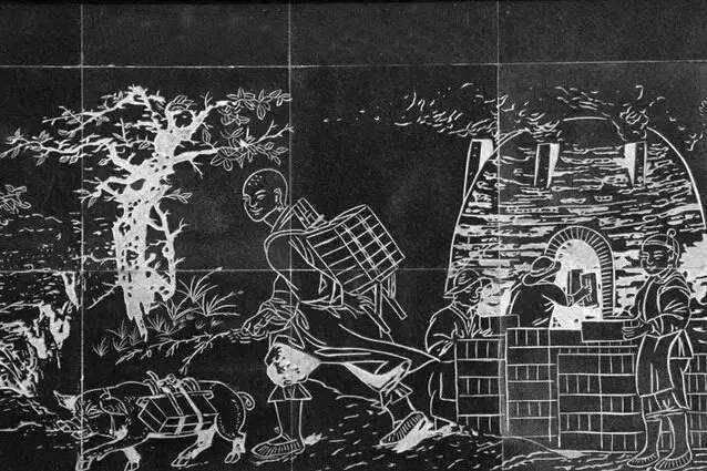 風(fēng)顛修寺的傳說線雕。記者 劉小雷 攝
