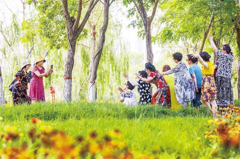 公園內(nèi)馬鞭草種植量達(dá)20多萬株,還有金雞菊、天人菊、松果菊、金娃娃萱草、月季等宿根花卉和醉蝶、波斯菊、百日草等,花卉種植面積7萬多平方米,占公園總面積的60%以上。絢麗多彩的大色塊的花景組合配以公園獨(dú)特的運(yùn)動(dòng)主題,呈現(xiàn)出動(dòng)靜有致的濱河“花海”,深受廣大市民的喜愛,成為黃河風(fēng)情線新晉網(wǎng)紅“打卡”點(diǎn)。