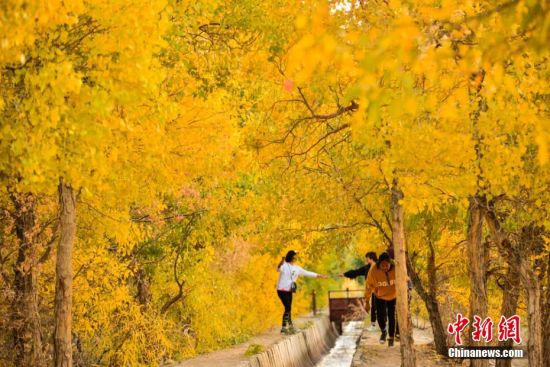 圖為胡楊秋色吸引不少游客和敦煌市民前來(lái)賞秋。 王斌銀 攝