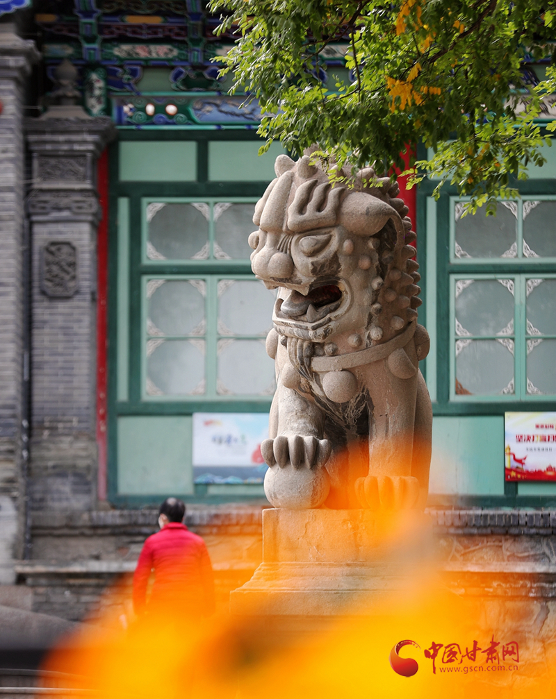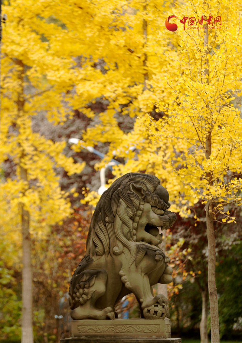 一片黃葉帶來秋的訊息,一片銀杏林則映襯一尊石獅子的美好時光,在五泉山,隨著深秋到來,銀杏泛黃,莊嚴的石獅與金黃的銀杏林產(chǎn)生了巧妙融合。在銀杏泛黃的時光里,石獅的威嚴中多了幾分恬靜。