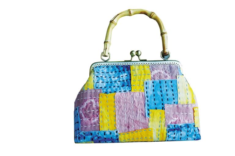 以蓼藍(lán)葉等染材染色的藍(lán)染布及其他植物性染料為原料,運(yùn)用隴西刺繡等手法繪制出各類(lèi)風(fēng)格的圖案,配以精致口金、各種風(fēng)格的時(shí)尚口金包,既具有觀(guān)賞性,又具有實(shí)用性,色彩素雅、時(shí)尚大方。