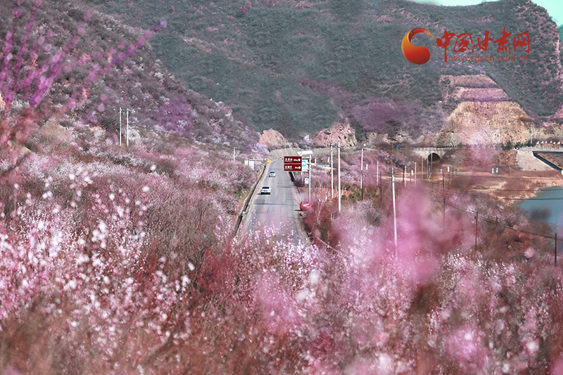 在五龍山,漫山桃花競相開放,香氣襲人,匯成了花的海洋,粉紅的桃花在春風里綻放,在春日的陽光下煞是好看,遠遠望去粉的嬌柔婀娜,層層疊疊,瓣瓣舒展。一列火車疾馳而過,滿眼的美景吸引過往游客駐足拍照留念,感受大自然給予這座小城的美好饋贈。