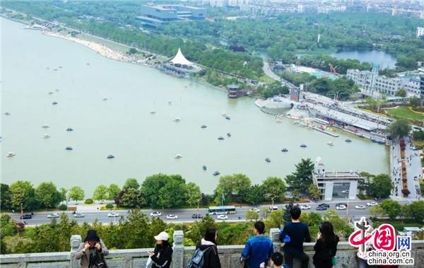 在大洞山、督公湖景區(qū),小丑嘉年華、氣球玩偶秀、魔法實驗室等成為假日溜娃的好去處,大小朋友在碧水藍天下與白鴿零距離互動,呈現了人與自然的和諧相處,非物質文化遺產項目表演“一葦渡江”中的漢服小哥衣袂飄飄地立于竹竿上,成為督公湖上一道靚麗的風景線。