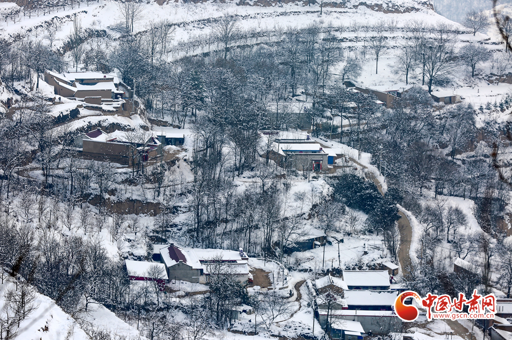 2月8日,雪過(guò)天晴,甘肅省平?jīng)鍪徐o寧縣賈河鄉(xiāng)侯山村銀裝素裹,美不勝收。果園、梯田、房屋、公路及遠(yuǎn)山構(gòu)成了一幅天然的鄉(xiāng)村畫卷。