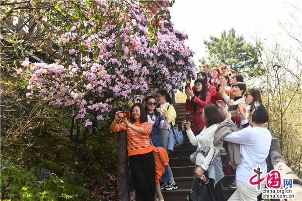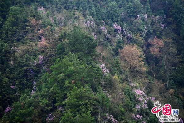 春天的穿巖山國家森林公園,漫山花開,層林盡染春色。這時(shí)候的野櫻花、野杜鵑、野映山紅竟相綻放,條條游步道宛如一條條花帶,帶著生機(jī)勃勃和滿天飄舞的芳香,讓游人心曠神怡。走在一條條蜿蜒的棧道,鮮氧環(huán)伺,鼻息間盡是春風(fēng)吹來的清新氣息。這里人文歷史與自然美景交融,既可在蜿蜒的茶馬古道,重走紅軍路,感受偉大的革命精神,又可在越河而建、凌空百丈的5D玻璃橋體驗(yàn)漫步云端的驚險(xiǎn)刺激,還可在寧靜愜意的云端古村落,感受淳樸的民風(fēng)和歷史悠長的農(nóng)耕文化奇葩。早晨的日出云海,中午的藍(lán)圖白云,下午的燦爛夕陽,鮮花與藍(lán)天、彩霞相映,讓人流連忘返。漫山遍野的綠意間,成團(tuán)櫻花、杜鵑、映山紅等夾雜其中,或粉紅或雪白,或紫色或丹紅,密密匝匝開滿枝頭。由于雪峰山景區(qū)的落差較高,從300米到1500米,櫻花期、杜鵑花期、映山紅花期交錯(cuò),成梯級(jí)往山背梯田景區(qū)、虎形山大花瑤綻放開來,讓賞花期能長達(dá)2、3個(gè)月之久。