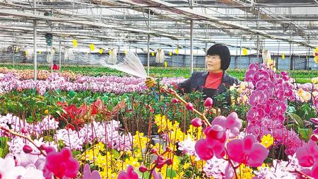 臨洮縣三易花卉種植基地的技術(shù)人員正在給蝴蝶蘭澆水。新甘肅·甘肅日?qǐng)?bào)通訊員 邊國(guó)鵬