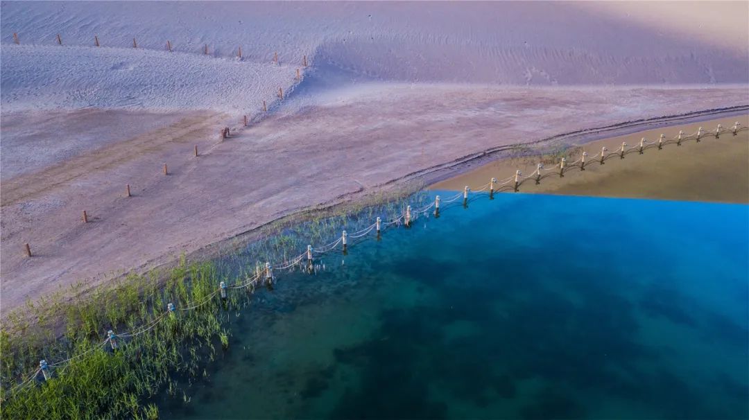 今年4月,敦煌市氣候溫潤(rùn),雨水較多,鳴沙山月牙泉景區(qū)草木蔥蘢,月牙泉水位持續(xù)上升。從4月23日在月牙泉航拍的圖片可以看出,月牙泉水域面積逐漸擴(kuò)大,泉水已滲出月牙泉圍欄之外近1米的距離。據(jù)悉,3年前月牙泉泉水一直保持在圍欄之內(nèi)。