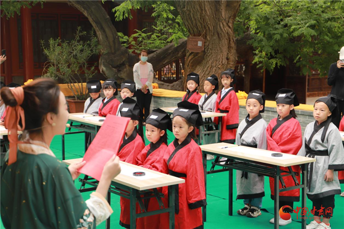 活動(dòng)二,“開(kāi)筆啟蒙 詩(shī)禮少年”開(kāi)筆禮活動(dòng)成功舉辦??鬃釉唬?ldquo;不學(xué)禮,無(wú)以立”,“開(kāi)筆禮”古稱(chēng)“破蒙”,為人生“四禮”之一,也是少兒開(kāi)始識(shí)字習(xí)禮的一種啟蒙教育形式,寄托了對(duì)孩子成長(zhǎng)的美好企盼。少年智則國(guó)智,少年強(qiáng)則國(guó)強(qiáng),在文廟舉辦“開(kāi)筆禮”,就是為了傳承中華優(yōu)秀傳統(tǒng),增強(qiáng)學(xué)子文化自信,激發(fā)學(xué)習(xí)熱情,為中華民族的偉大復(fù)興刻苦學(xué)習(xí),努力奮斗。
