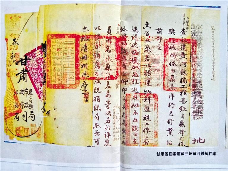 在古金城蘭州架設橫跨于黃河南北兩岸的鐵橋,曾是左宗棠的夢想,只因當時洋商索價過高而作罷。30年后,正值清末實行新政,黃河鐵橋在陜甘總督升允和彭英甲的任上創(chuàng)修成功。建橋過程慘淡經營,艱苦備至,已人所共知。好在建設黃河鐵橋形成的檔案,歸檔于甘肅農工商礦總局,沒有存于當時的布政使司,幸運地躲過了民國二年那一劫。甘肅農工商礦總局后更名為甘肅省署實業(yè)廳,民國十六年(1927年)甘肅省政府改實業(yè)廳為建設廳,這些檔案存于建設廳。1949年7月,國民黨甘肅省政府逃離前發(fā)出緊急命令:“轉移前將政府檔案做緊急處理”,重要檔案進行“焚毀、埋藏、轉移”,次要檔案“從速列冊銷毀”。只因倉皇逃離,未來得及銷毀。人民解放軍從解放蘭州的戰(zhàn)火中把包括鐵橋檔案在內的許多檔案搶救出來,由蘭州軍管會接管。2002年,《蘭州黃河鐵橋檔案》入選首批《中國檔案文獻遺產名錄》。