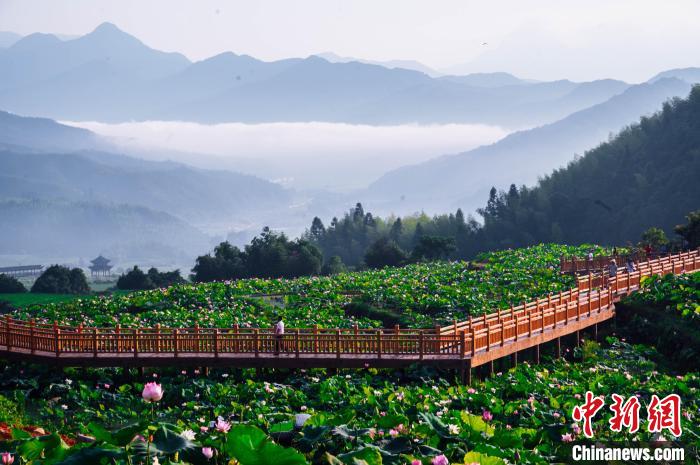 “為荷而來”第七屆中國建蓮文化旅游節(jié)在三明市建寧縣濉溪鎮(zhèn)謝馬蘇梯田蓮海舉行。 李南軒 攝