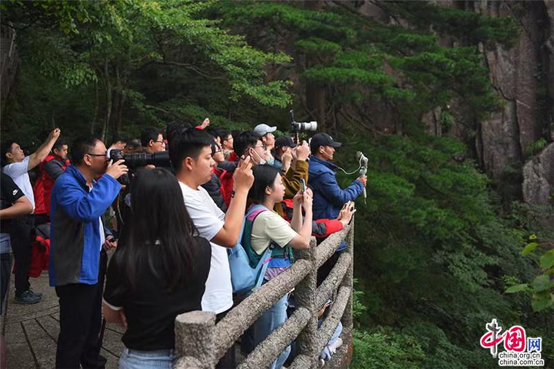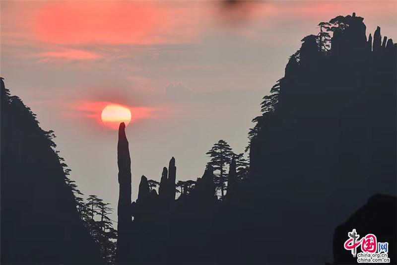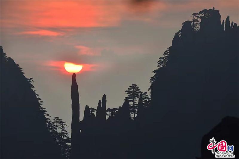【點(diǎn)睛】在始信峰一處不起眼的觀景臺(tái),每年有那么幾天都會(huì)出現(xiàn)非常有寓意的奇景,當(dāng)?shù)厝朔Q為“鴻運(yùn)當(dāng)頭”。