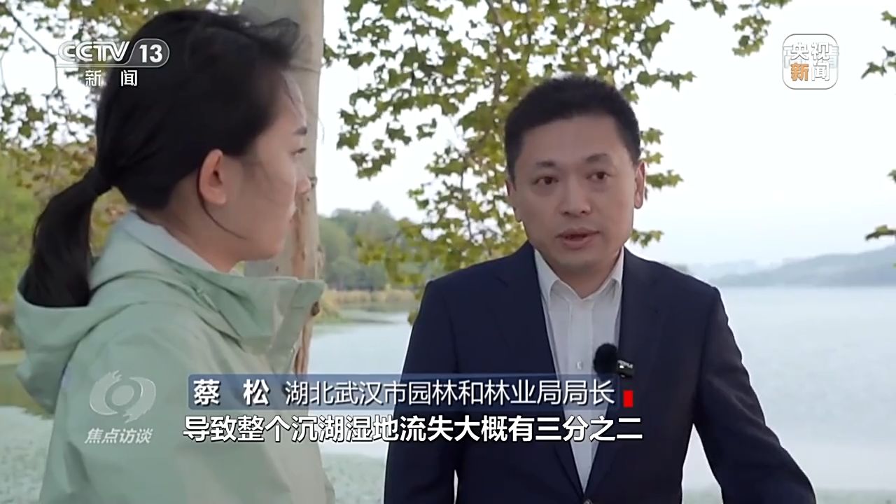 湖北武漢市園林和林業(yè)局局長 蔡松:圍湖造田、養(yǎng)魚,導(dǎo)致整個沉湖濕地流失大概有三分之二,比較嚴(yán)重。從2013年開始,武漢市加大對沉湖濕地的整治力度,通過生態(tài)補(bǔ)償?shù)姆绞?,整個退漁還濕達(dá)到了7.8萬畝。