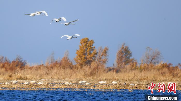 博湖縣境內(nèi)的博斯騰湖白鷺洲迎來大批天鵝?!∧昀?nbsp;攝