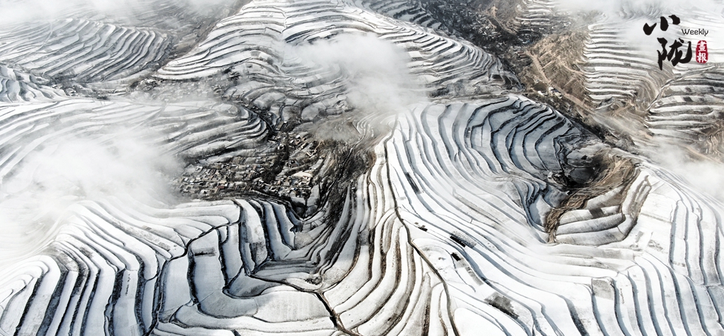 白雪覆蓋的山谷,靜謐的村莊,滿目潔白;遼闊的草原變成莽莽雪原,白雪皚皚的冰湖純凈如鏡;山頭繚繞的云霧和銀裝素裹的梯田互相映照,構(gòu)成了一幅悠然清麗的水墨畫卷。