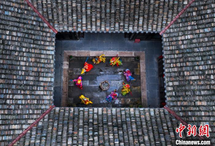 安徽省宣城市郎溪縣省級(jí)非遺小馬燈在郎溪縣濤城鎮(zhèn)慶豐村大佛山養(yǎng)心谷展演。 李曉紅 攝