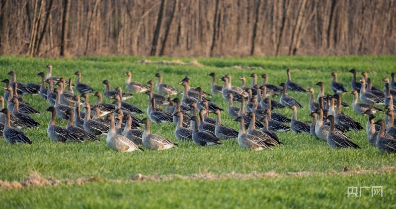 組圖丨甘肅涇川:大雁南飛途中覓食忙