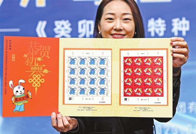 中國甘肅網(wǎng)1月6日訊 據(jù)蘭州晨報報道(奔流新聞·蘭州晨報記者王思璇)1月5日,中國郵政發(fā)行《癸卯年》特種郵票1套2枚,圖案內(nèi)容分別為:癸卯寄福、同圓共生,這套特種票是中國生肖郵票第四輪中的第八套。同日,《癸卯年》特種郵票在蘭州市各集郵營業(yè)網(wǎng)點(diǎn)發(fā)售。