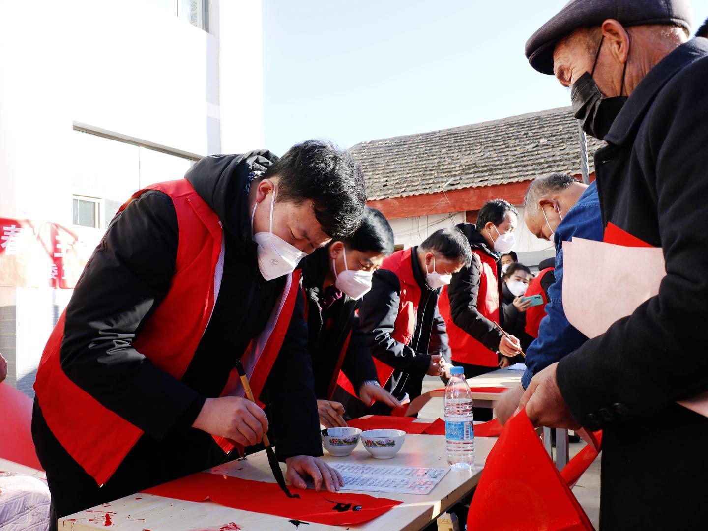 活動(dòng)現(xiàn)場,來自涼州區(qū)書法家協(xié)會(huì)、涼州區(qū)書畫院的文化志愿者們揮毫潑墨,筆尖游走于墨色與紅紙之間,以筆寄意、以字傳情,片刻間,一張張象征平安吉祥的"福"字、一副副謳歌黨的二十大、內(nèi)容文明健康的紅色喜慶春聯(lián),寄托著滿滿的新春祝福撲面而來。現(xiàn)場群眾拿到自己心儀的春聯(lián)和"福"字,喜悅之情溢于言表?;顒?dòng)中,涼州區(qū)婦女聯(lián)合會(huì)、共青團(tuán)涼州區(qū)委等單位還開展了愛心捐贈(zèng)、公益診療、義務(wù)理發(fā)等志愿服務(wù)活動(dòng),為困難群體送上溫暖和健康。