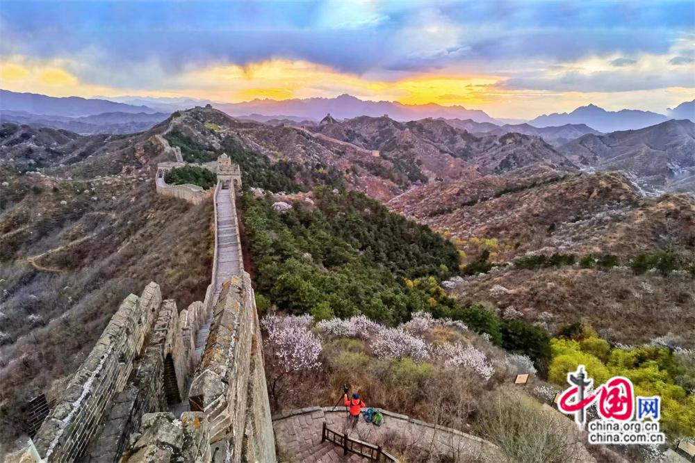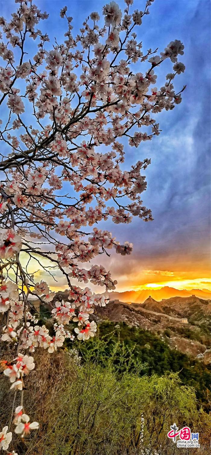 資料圖:當(dāng)長城遇上杏花。 張愛東 攝  圖片和作品內(nèi)容無關(guān)