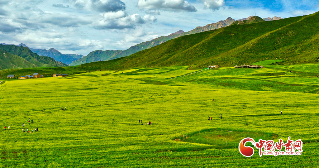 連日來,甘肅省張掖市民樂縣萬畝油菜進(jìn)入盛花期,金黃的油菜花海與草原綠野相連,在藍(lán)天白云的映襯下美不勝收,成為河西走廊地區(qū)的一道別致風(fēng)景,吸引了眾多國(guó)內(nèi)外游客前來觀光旅游。