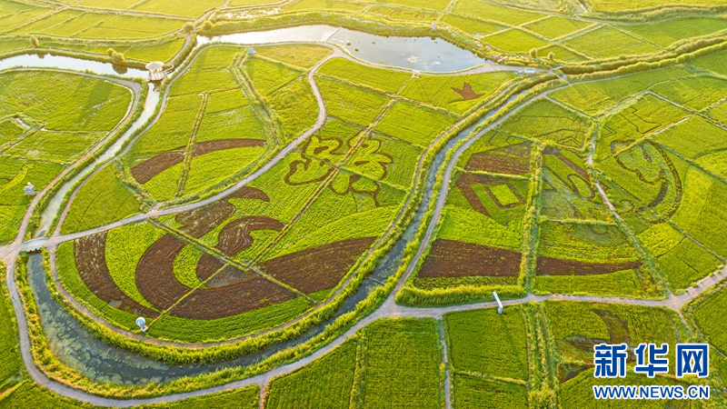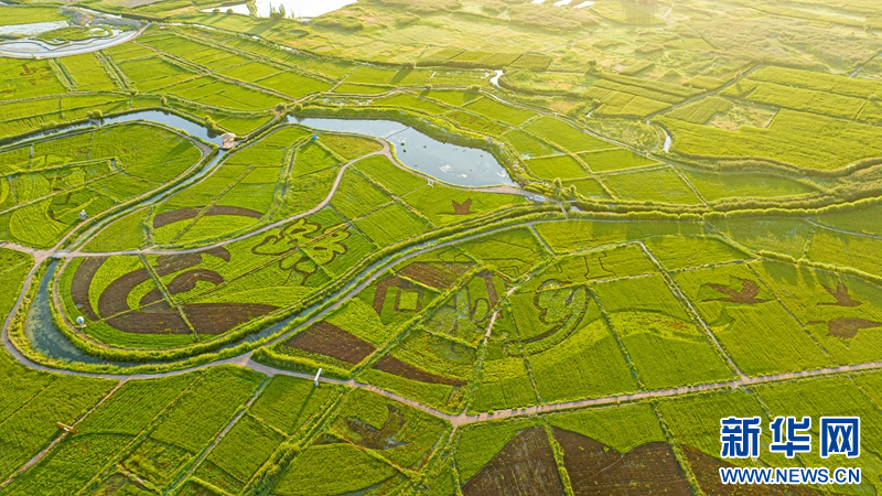 8月20日,在甘肅省張掖市甘州區(qū)烏江鎮(zhèn)新河田園綜合體藝術稻田景觀區(qū),以“絲路水鄉(xiāng)·稻畫田園”為主題組成的稻田畫惟妙惟肖、栩栩如生,呈現(xiàn)出祁連山下別樣的田園魅力。新華網發(fā)(成林 攝)