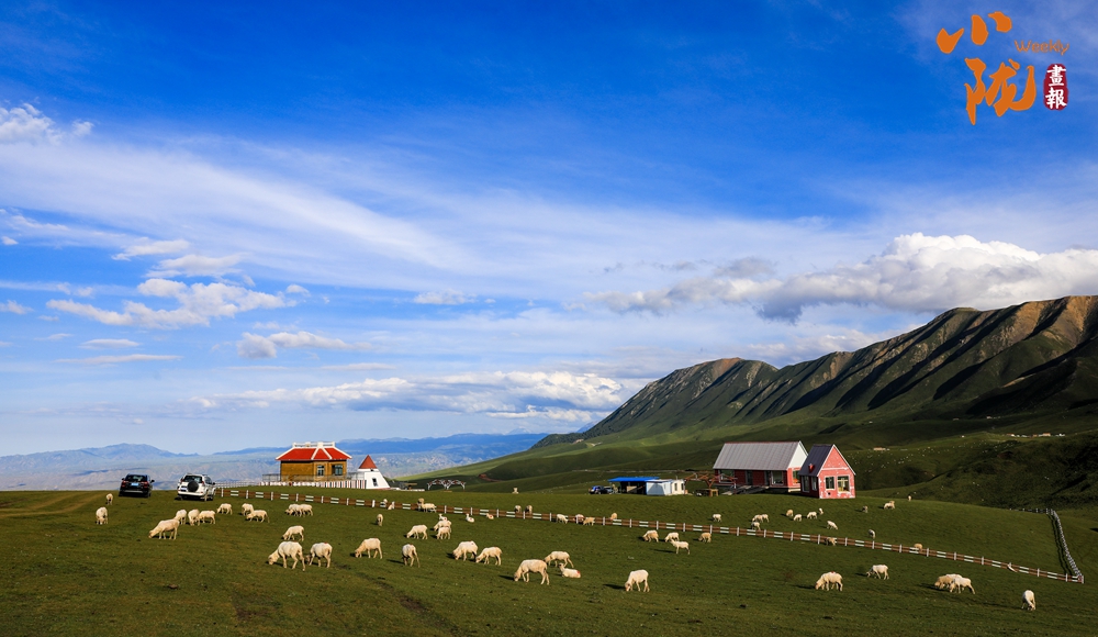 祁連山下綠草如茵,牛羊點綴其中,別具風情。