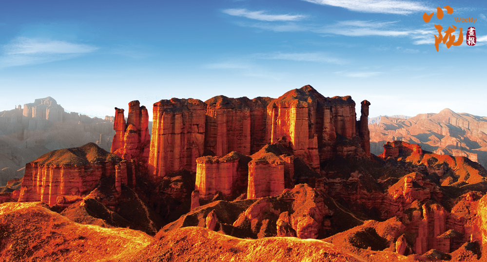 冰溝丹霞以砂巖地貌遺跡景觀為主體,是國內(nèi)窗欞狀宮殿發(fā)育最好、規(guī)模最大的地質地貌遺跡,是“窗欞狀宮殿式丹霞”的命名地。