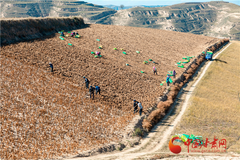 同樣在榆中縣園子岔鄉(xiāng),連片的田間地頭里,農(nóng)民們干勁十足,臉上洋溢著豐收的喜悅。隨著鋤頭的翻挖,一顆顆個(gè)大飽滿的百合破土而出,構(gòu)成了一幅繁忙的秋收畫卷。