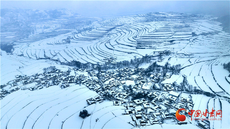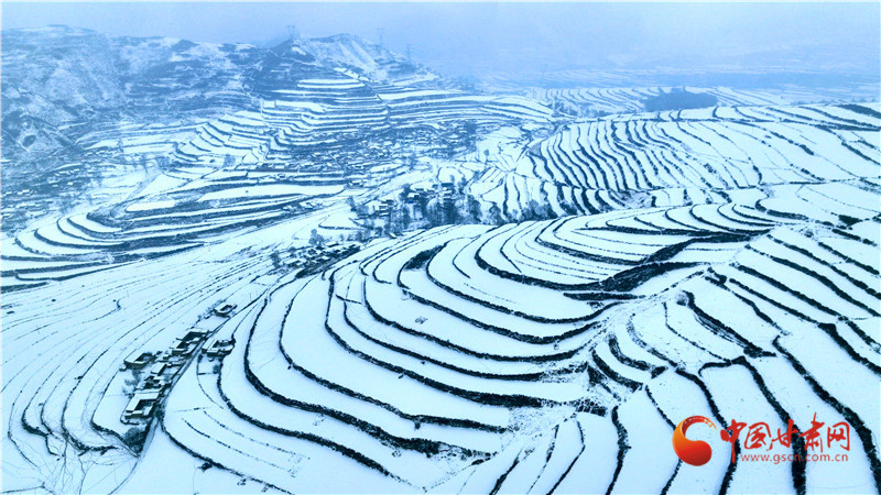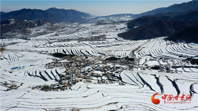 灑向大地,錯(cuò)落有致的梯田、層巒疊嶂的山峰與落雪交相輝映,繪就一幅冬日盛景。