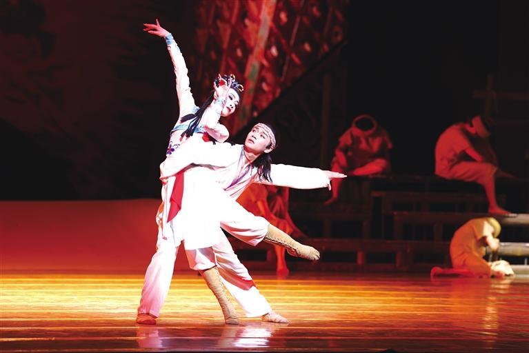 經典舞劇《大夢敦煌》是一部富于傳奇色彩的四幕舞劇,首演至今,已獲得中宣部“五個一工程”獎、中國舞蹈“荷花獎”、中國“文華獎”等多個獎項,被譽為中國原創(chuàng)舞劇中的頂級之作,民族舞劇的經典之作。當晚,集故事美、音效美、舞美美、表演美于一身的《大夢敦煌》,以一場淋漓盡致、亦夢亦幻的完美演出,收獲了現場觀眾經久不息的掌聲。圖為演出現場。