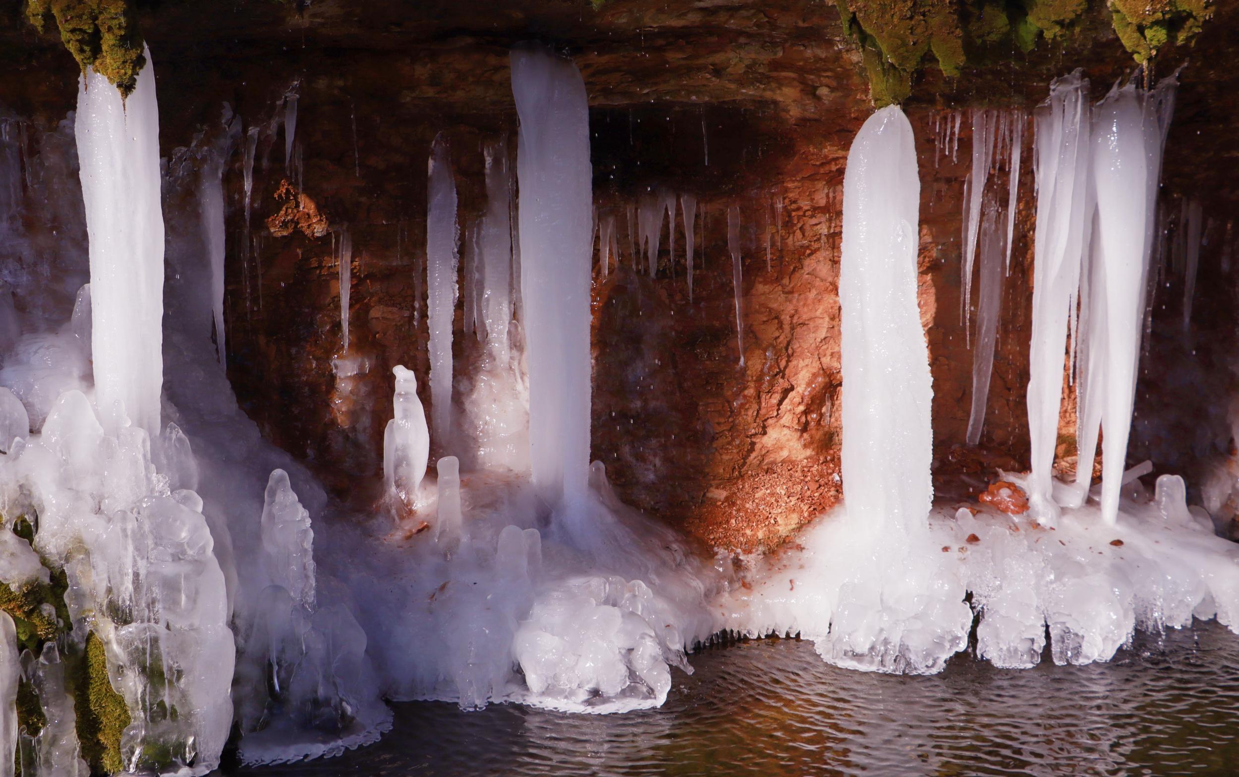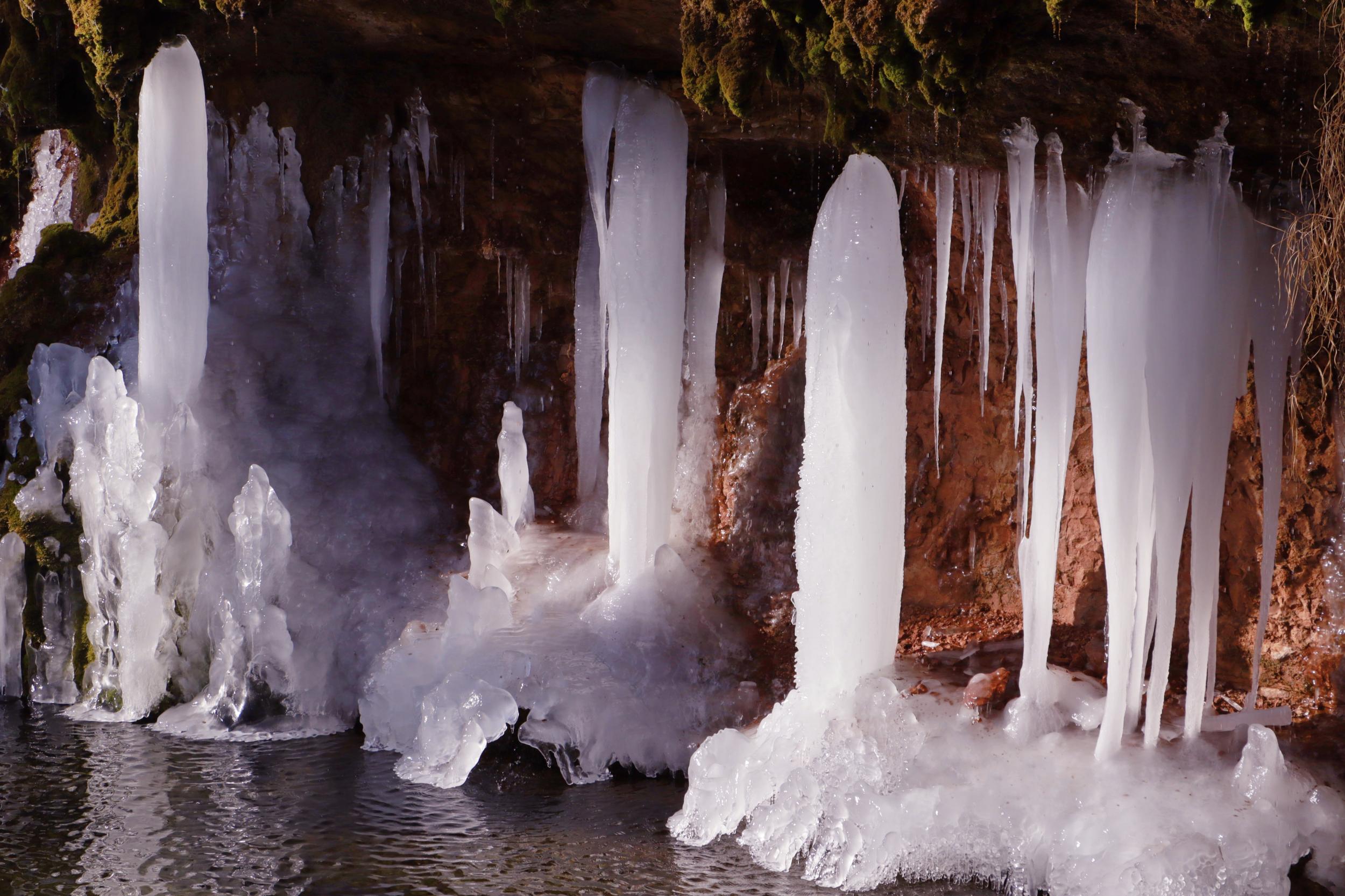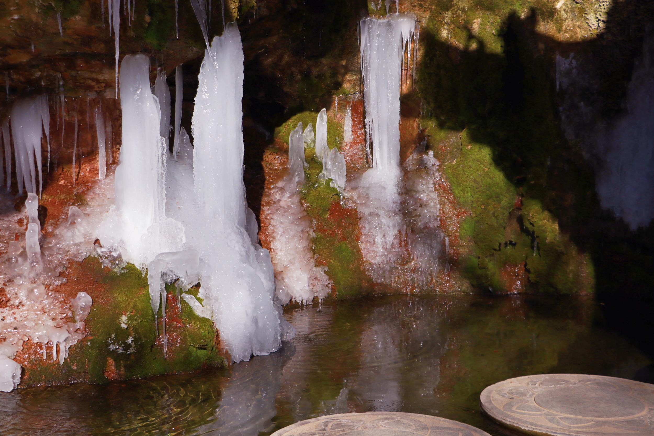 連日來(lái),崇信縣持續(xù)降溫,AAAA級(jí)旅游景區(qū)龍泉寺泉水凝結(jié)成奇特秀麗的冰掛、冰柱、冰花美景,懸掛于山間,如萬(wàn)把銀色寶劍垂吊,展現(xiàn)著冰肌雪骨的風(fēng)姿,似盞盞熒光閃爍,在陽(yáng)光的照耀下熠熠生輝、耀眼奪目,引來(lái)不少游客拍照觀賞。(崇信縣融媒體中心記者:孫淑霞  張百耀)