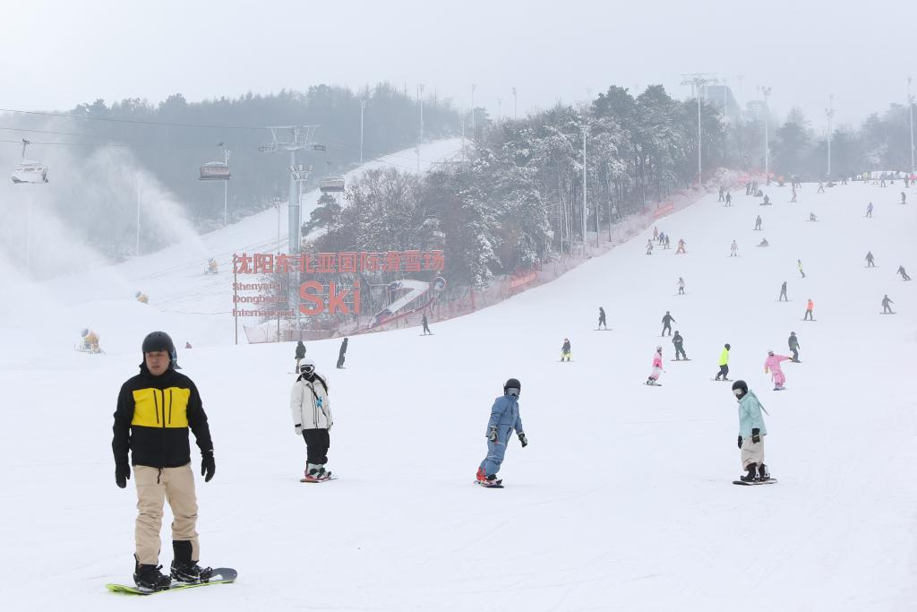 滑雪愛(ài)好者在沈陽(yáng)市東北亞滑雪場(chǎng)滑雪。新華社記者陳為 攝