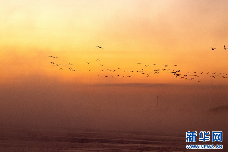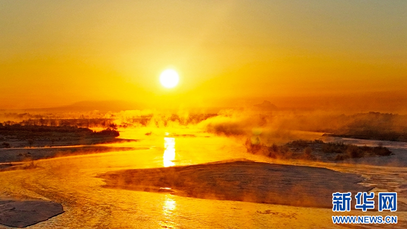 1月21日,冬日清晨,甘肅張掖黑河濕地日出如畫。一輪冉冉升起的紅日絢麗奪目,與河流、樹木、候鳥、晨霧共同構(gòu)成了一幅生態(tài)畫卷。新華網(wǎng)發(fā)(成林 攝)