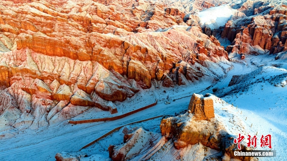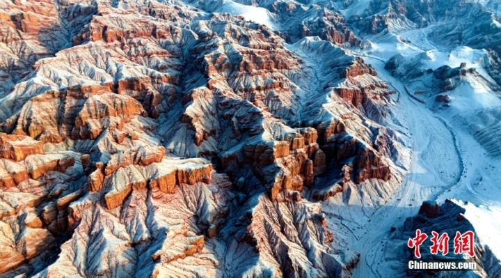 1月24日,雪霽初晴的甘肅省張掖市臨澤縣板橋鎮(zhèn)境內(nèi)的紅溝丹霞銀裝素裹,雪景如畫(huà)。圖/CNSphoto 楊瀟 攝