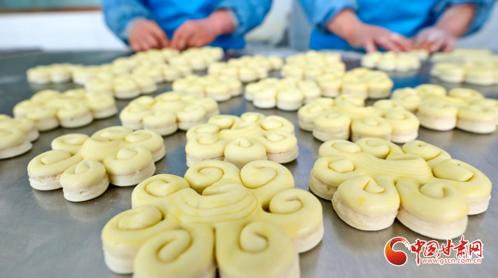 甘肅省張掖市山丹縣一食品加工坊,工作人員正在炸制“糖花子”。