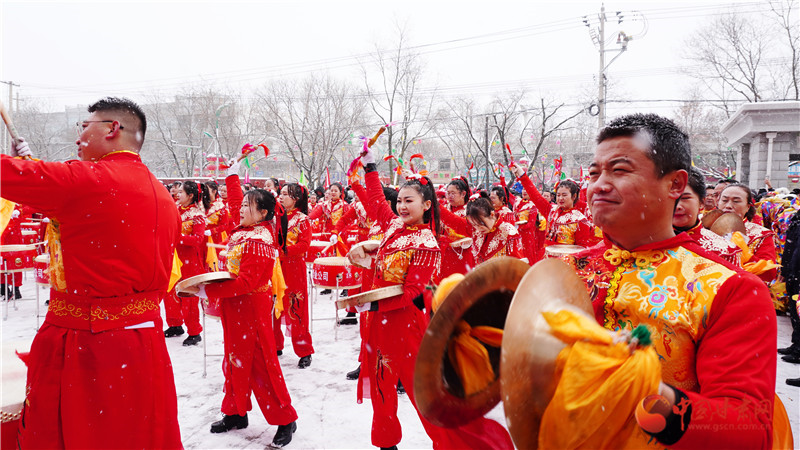 演員們身著喜慶艷麗服裝,頭戴五彩頭飾,手舞彩扇,腰系彩帶,精神抖擻,敲鑼打鼓,盡情表演,贏得陣陣掌聲,現(xiàn)場觀眾紛紛拿手機(jī)、相機(jī),記錄這一刻的熱鬧與喜慶。