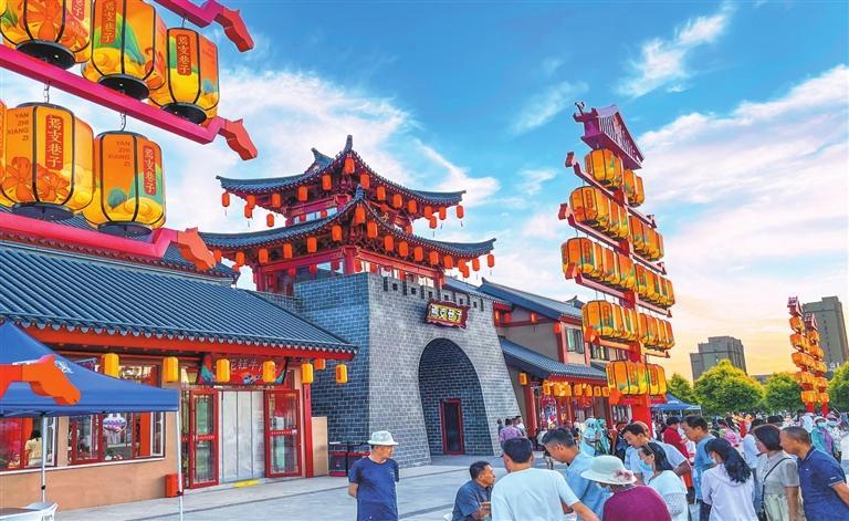 夏日的傍晚,這里格外熱鬧。步入巷內(nèi),穿過(guò)仿古牌坊,行走在青石板路上,經(jīng)過(guò)新中式仿古的巷子,寬敞的街道兩邊都是仿古的建筑,曲徑通幽處,美食坊,手工作坊,酒吧街,一字兒鋪排開(kāi),小攤上當(dāng)?shù)刈灾频纳介?、農(nóng)民自己種的各種蔬菜、自制的各種小工具、精美小籮筐、葫蘆瓢等好多物品勾起了兒時(shí)的回憶。
