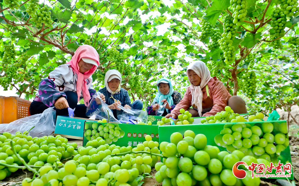 8月28日,在高臺縣南華鎮(zhèn)智號村1000畝陽光玫瑰葡萄綠色標準化產業(yè)園內,40多萬斤陽光玫瑰進入成熟采摘期,果農們正在采摘、分揀、裝箱,準備發(fā)往浙江、江蘇、新疆、青海、內蒙古等地客商的手中。