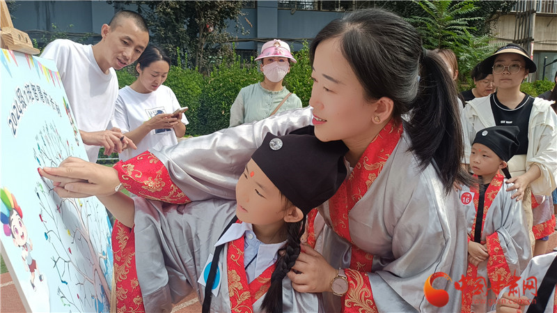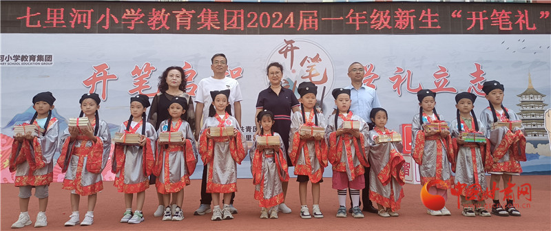 據(jù)介紹,七里河小學(xué)開筆禮服裝均由學(xué)校提供,每年使用后清洗保存,學(xué)生不用租借禮服。學(xué)校將開筆禮的儀式一年年傳承下來,希望同學(xué)們可以接受到傳統(tǒng)文化,從寫人字入手,感受人字帶來的人生哲理,開啟新的學(xué)習(xí)生涯。同時,開筆禮中的端正衣冠、朱砂啟智、擊鼓鳴志等都是傳承千年的入學(xué)禮儀,是孩子們了解中華傳統(tǒng)文化的一個窗口。