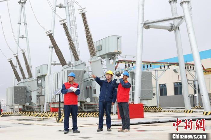 國網(wǎng)慶陽供電公司工作人員在華能翼珍風(fēng)光電站巡視設(shè)備運(yùn)行情況。楊馥毓 攝