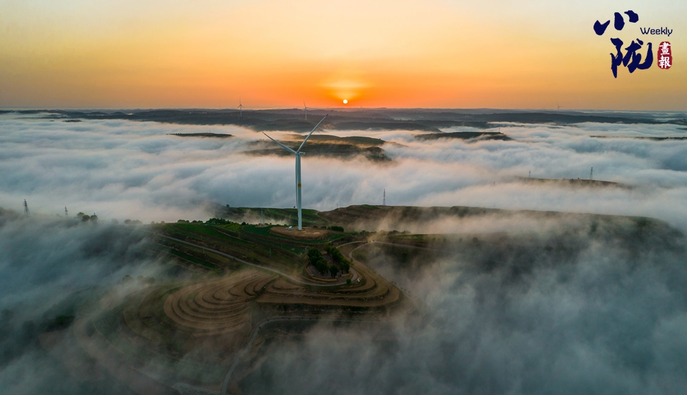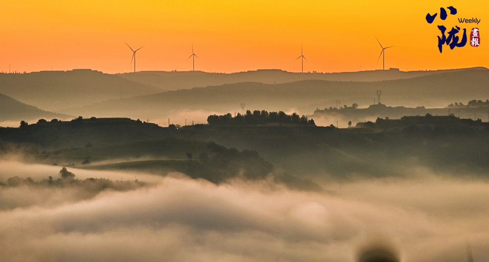 云霧如海浪般向四周漫延,呈現(xiàn)出別樣的霧海景觀,聳立在山川梁峁間的風(fēng)力發(fā)電機(jī)隨風(fēng)律動(dòng),成為當(dāng)?shù)匾坏廓?dú)特的風(fēng)景。