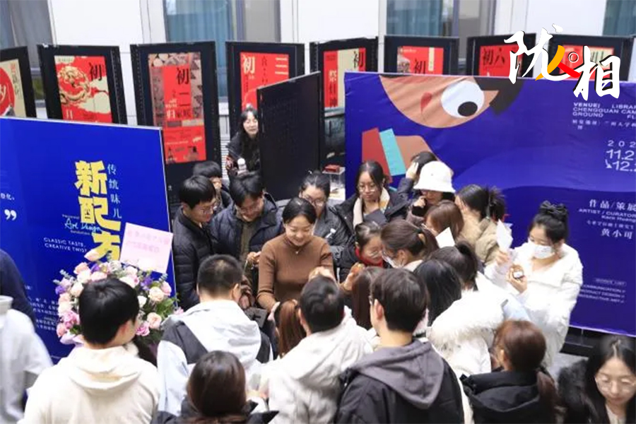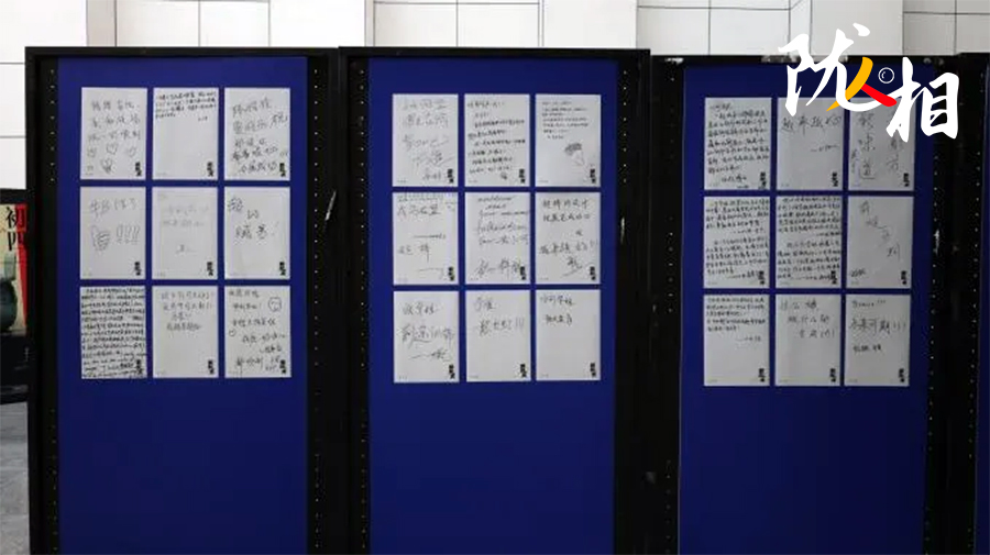 整體被搭建成“S”形的展區(qū),借鑒了博物館的陳展布局,讓參觀(guān)者不必走回頭路;展區(qū)第二部分陳列著各種文創(chuàng)玩偶的展臺(tái)赫然入目,讓人驚喜連連;展區(qū)外圍的留言墻,不僅有備好的A4紙,還貼心地粘上了馬克筆,方便觀(guān)眾留言……來(lái)參觀(guān)的人,即便對(duì)藝術(shù)不敏感也能被設(shè)計(jì)者的細(xì)心和創(chuàng)意輕松打動(dòng)。