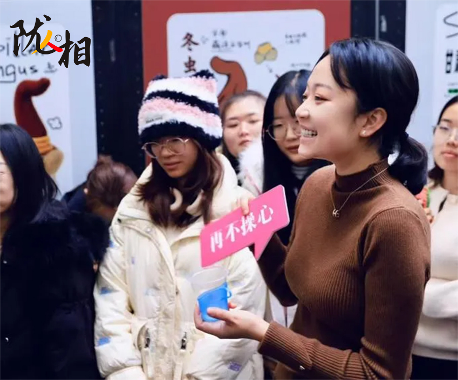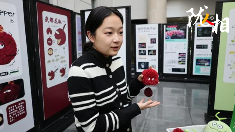 她拿起一只文創(chuàng)玩偶,輕輕拉起玩偶頂部蜷縮的細(xì)柄,這只紫紅色、毛茸茸的花椒玩偶立刻“嗡嗡”震動(dòng)起來(lái)。花椒味覺(jué)上的麻就這樣傳遞到手上,精妙的構(gòu)思,令大家會(huì)心一笑。