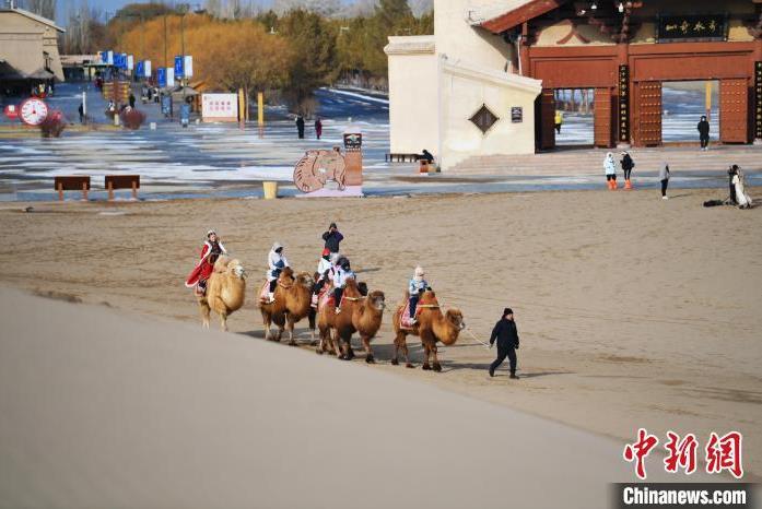 1月13日,甘肅敦煌鳴沙山月牙泉景區(qū)內(nèi),游人免票游玩。中新社記者 李亞龍 攝