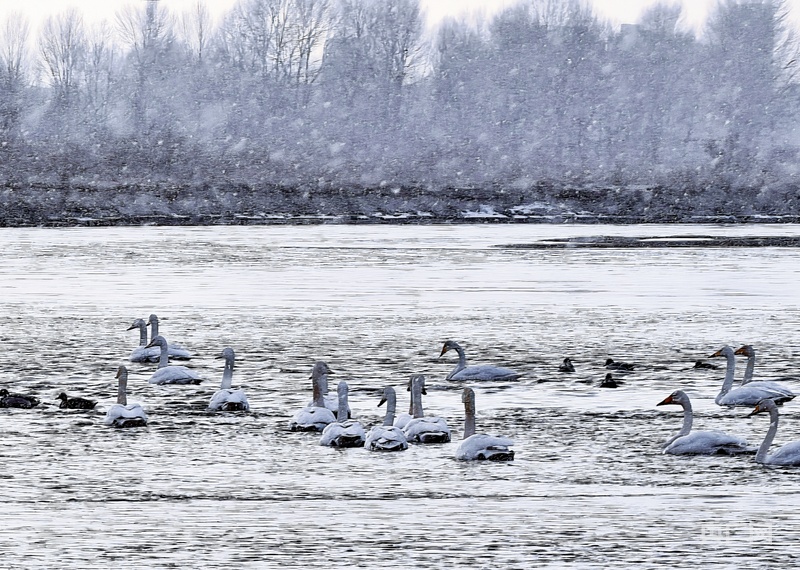 近日的一場(chǎng)降雪讓甘肅張掖黑河濕地國家級(jí)自然保護(hù)區(qū)高臺(tái)段銀裝素裹,在此棲息的大天鵝盡情在雪中引頸高歌、嬉戲歡鬧、振翅飛翔,成為一道亮麗的生態(tài)美景。