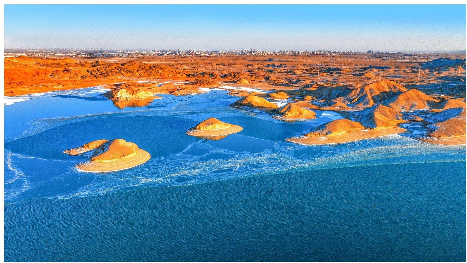 中國(guó)甘肅網(wǎng)2月8日訊 據(jù)嘉峪關(guān)日?qǐng)?bào)報(bào)道(融媒體中心記者 李巍 攝)冬日的黑山湖,如鑲嵌在茫茫戈壁中的“天鏡”,與湛藍(lán)天色、夕陽(yáng)下的丹霞地貌渾然一體,美得像一幅油畫(huà)。