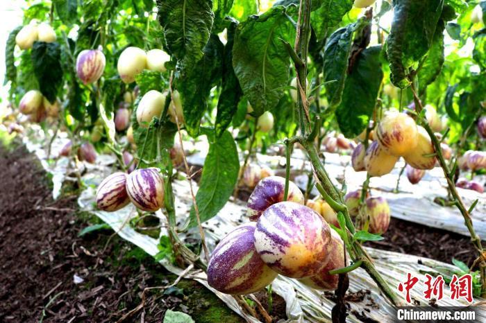 人參果屬茄科多年生草本植物,耐瘠薄、抗寒冷、抗鹽堿,是一種生態(tài)適應(yīng)性較強的草本植物。2007年,民勤縣引入人參果,重點以日光溫室種植方式為主,經(jīng)過十多年的試驗示范和逐步發(fā)展,現(xiàn)生產(chǎn)規(guī)模達到2.1萬畝,占全國設(shè)施種植規(guī)模的30%以上,成為全縣日光溫室生產(chǎn)的主導品種,當?shù)剞r(nóng)業(yè)產(chǎn)業(yè)發(fā)展的一張亮麗名片。