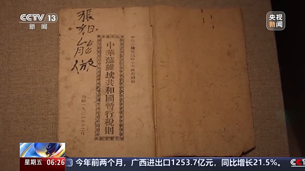 寧化縣革命紀(jì)念館講解員 邱小紅:《中華蘇維埃共和國(guó)暫行稅則》是赤色中國(guó)的第一部稅法,我館所展示的這本保存完整。它的封面采用的就是寧化玉扣紙。