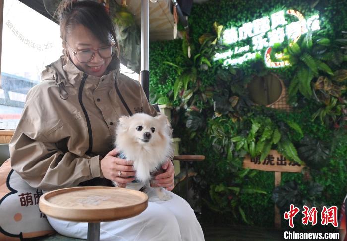3月16日,吉林長(zhǎng)春,寵物和主人在車(chē)廂拍照留念。中新社記者 張瑤 攝